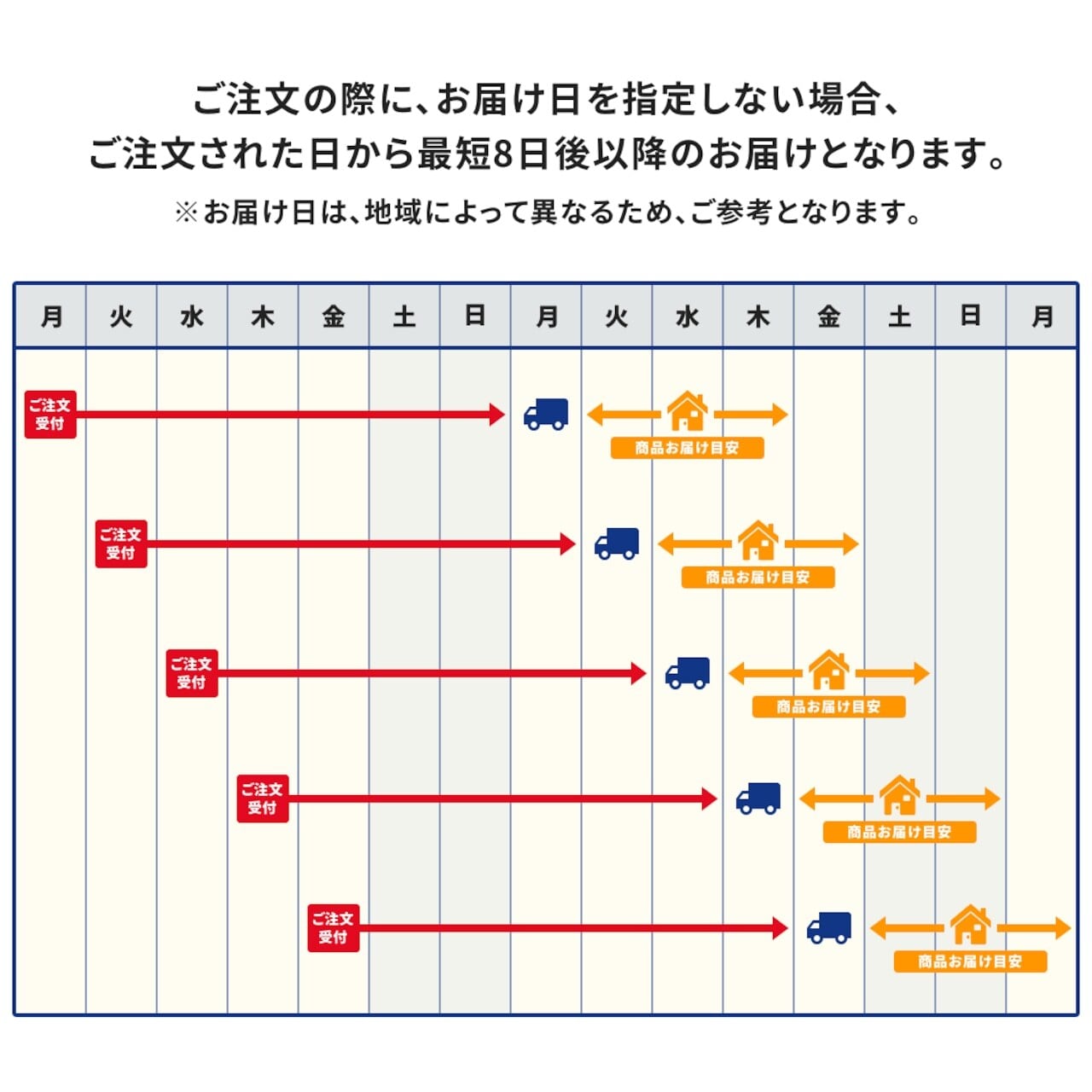 【配送目安】 ご注文された日から最短8日後以降にお届けいたします。